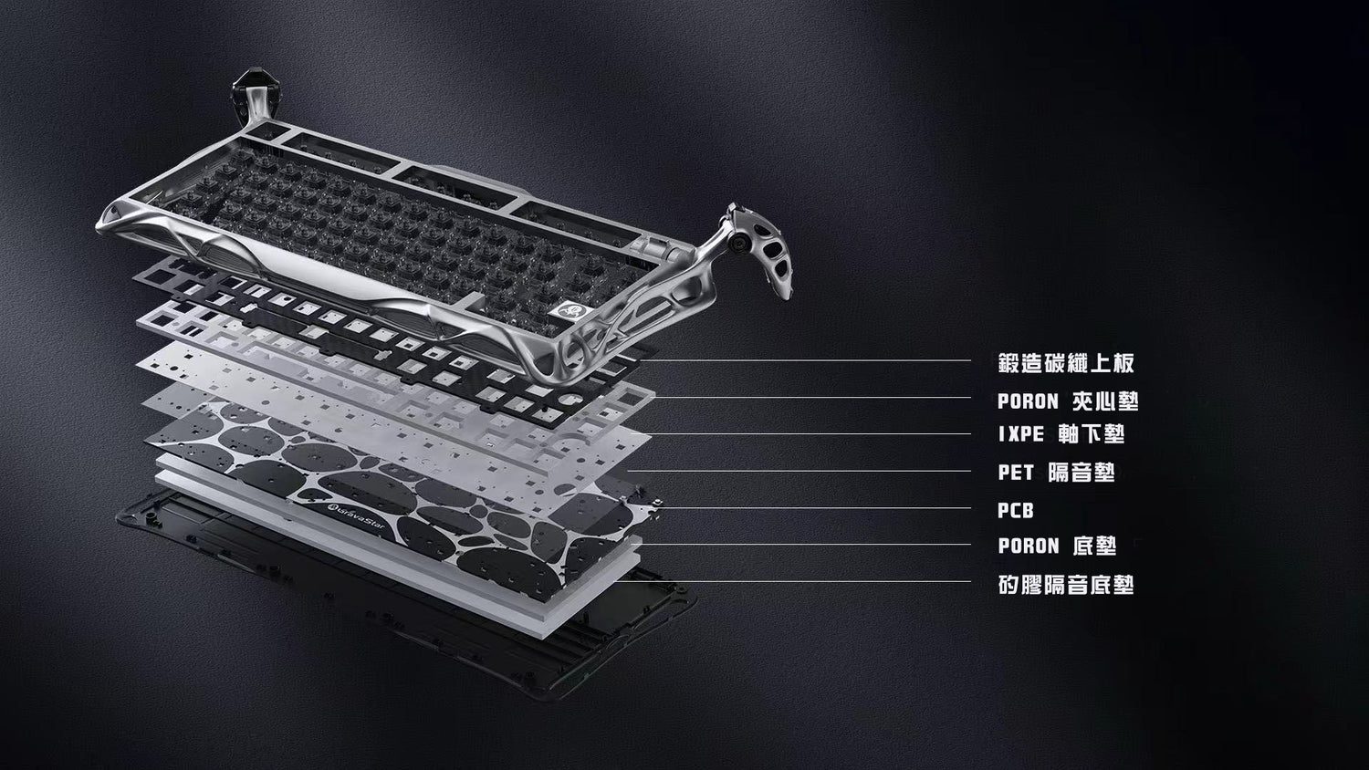 ✅ 沉穩手感|半鋁合金骨架+鍛造碳纖上板,敲擊手感更上層樓