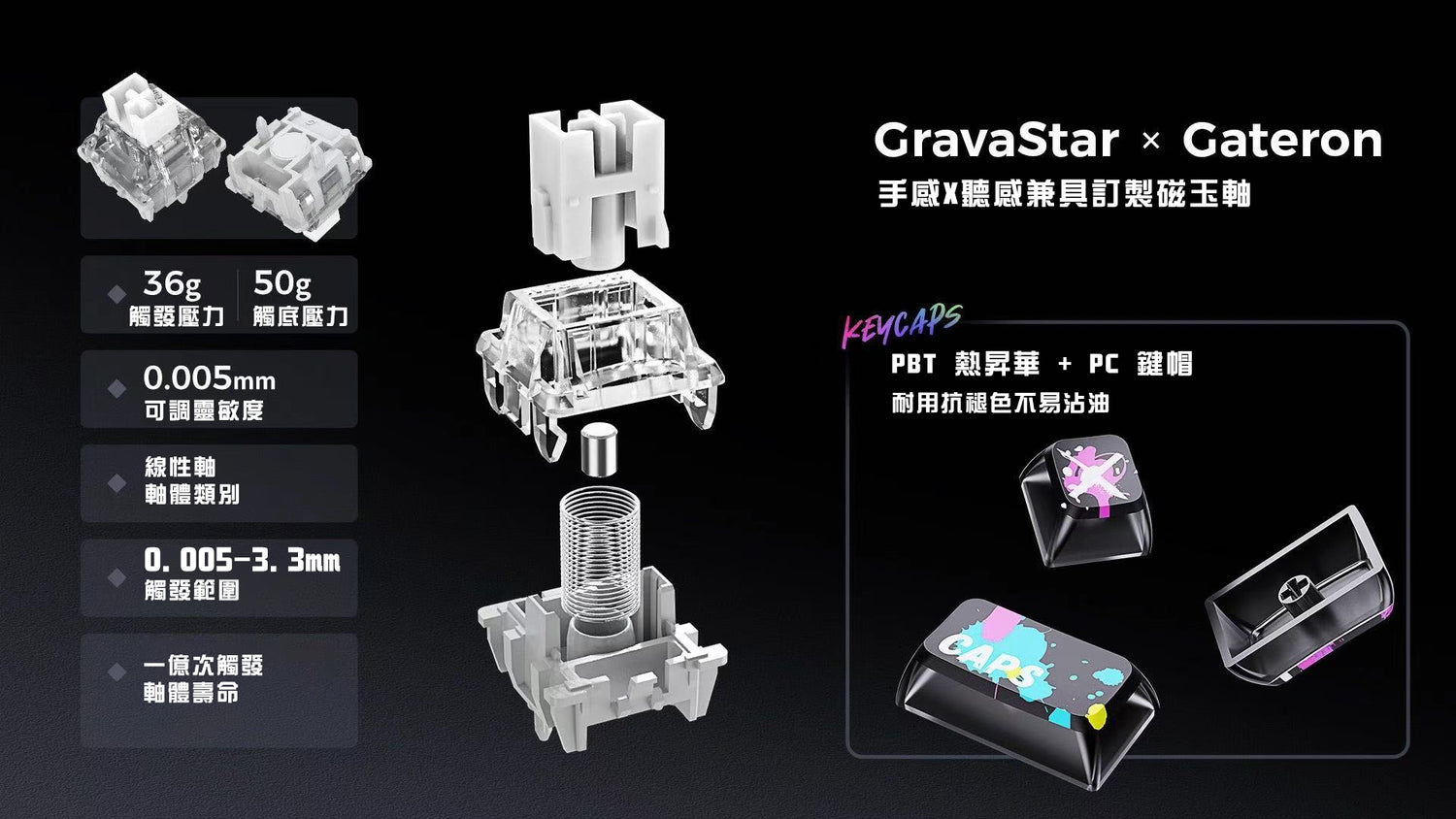 ✅ 磁軸設計|GravaStar x Gateron 打造,可在 0.005mm~3.3mm 之間以 0.005 mm 精度自訂觸發點